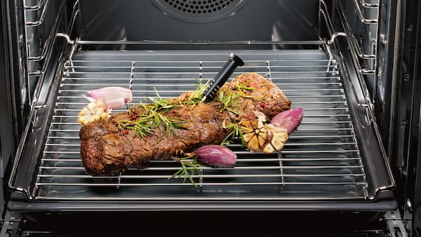 Lernen Sie auch die Bratautomatik kennen: Das Anbraten von Fleisch erfolgt mit hoher, das Fortgaren mit gewählter Temperatur. So bleibt das Fleisch saftig.