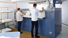 „So habe ich es gelernt“, sagt Deimann, der seiner Mutter in den 1960er Jahren die erste gewerbliche Waschmaschine kaufte – eine Miele. „Auch ich arbeite seit 27 Jahren mit Geräten von Miele Professional“, bestätigt Maria Mertens. Heute sind es zwei Waschmaschinen für je 24 Kilogramm Füllgewicht und je eine für 30, 20 und acht Kilogramm Wäsche, ergänzt durch drei Trockner für maximal 40 Kilogramm Textilien. Die Mangel, die mindestens zweimal pro Woche ganztags in Betrieb ist, „schafft“ bis zu 115 Kilogramm glatte Wäsche pro Stunde.