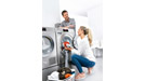 Bewährte Programmpakete wie „Heimtextilien“ (abgestimmt auf Bettwaren und Gardinen), „Sportwäsche“ oder „Outdoor“, Spezialprogramme für Oberhemden, Jeans und dunkle Wäsche sowie die neue Funktion „Vorbügeln“ sind in der Steuerung hinterlegt. Für zügige Arbeitsabläufe im Alltag sorgt eine Tür, die sich besonders einfach öffnen lässt, ohne dass eine separate Taste zur Entriegelung gedrückt werden muss. Der Trockner überzeugt durch einfachste Filterreinigung. Ebenfalls praktisch: Die sensorgesteuerte Füllstandsanzeige für Waschmittel.