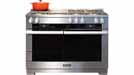 HR 1956, ein 1,22 Meter breites Standgerät (48 Zoll), das für amerikanische Verhältnisse eine bisher nicht bekannte Anwendungsvielfalt bietet. Im Detail sind das zwei Garräume, der größere davon mit einem Volumen von 92 Litern. Der kleinere Garraum ist funktional ein Backofen mit Mikrowelle (43 Liter Volumen). Integriert ist eine zusätzliche Wärmeschublade. Die Kochfläche bietet sechs Gaskochstellen und einen sogenannten Griddle – eine Edelstahlfläche für das Grillen. Mitgezählt? Mit diesem Funktionsumfang ist der HR 1956 ein Fünf-in-Eins-Gerät.