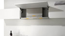Neue, energieeffiziente Flachpaneel-Hauben chwenken motorisch angetrieben aus dem Oberschrank