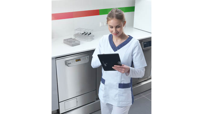 Miele bietet hierfür eine einfachere und schnellere Lösung: Mittels der App, die unter dem Namen „DataDiary“ verfügbar ist, empfängt das Tablet direkt vom Thermodesinfektor die Aufbereitungsdaten. Dies geschieht sofort nach jedem Prozessschritt und ohne jeden Handgriff des Personals. Die Dokumentation als solche erledigt „DataDiary“ ebenfalls. Jeder verantwortliche Mitarbeiter identifiziert sich durch seine UserID mit Passwort oder einer Chipkarte.