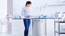 Für hohen Bedienkomfort sorgt zum Beispiel das patentierte Salzgefäß in der Tür, durch das sich Salz bequem im Stehen nachfüllen lässt, auch bei voll beladener Maschine und ohne umständliches Herausziehen des Unterkorbes. Ein Anschluss für flüssige Reinigungsmittel dosiert diese automatisch und präzise, wenn gewünscht. Über eine Touch-Bedienung werden die
