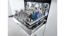 Für die Unterbringung von Prozesschemikalien steht unterhalb des Spülraums eine große Push-to-open-Schublade zur Verfügung, die sich durch leichten Druck öffnet. So sind alle Kanister bei Bedarf leicht entnehm- und austauschbar. Währenddessen kann die Sauglanze an einer kleinen Auffangwanne fixiert werden, sodass keine Chemikalien auf den Fußboden oder in die Schublade tropfen. Zusätzlich ermöglicht ein integrierter Halterahmen eine effizientere Restentleerung der Kanister – was wirtschaftlich ist und nachhaltig, da weniger Prozesschemie ungenutzt entsorgt wird.