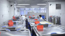 Zwischen Frühstück und Mittagessen herrscht Hochbetrieb in der Großküche des Stuttgarter Marienhospitals. Schmutziges Geschirr wird im Minutentakt gespült, denn bald werden Königsberger Klopse auf den Stationen erwartet. Heiß sollen sie ankommen, mit knackigem Salat und gekühltem Nachtisch. Dafür sorgen Speiseverteilwagen, die Warmes warm und Kaltes kalt halten – und ebenso sorgfältig gesäubert werden wie Teller und Tassen. Hierfür ist modernste Technik im Einsatz, die in vielen Kliniken auch zum Aufbereiten von Containerwagen mit OP-Instrumenten genutzt wird.
