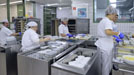 Mittagszeit: Ein eingespieltes Team aus 65 Mitarbeitern in Voll- und Teilzeit füllt Teller und Suppenschüsseln, ehe alles auf die Stationen gebracht wird.