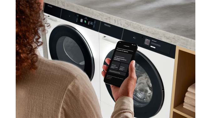 Software-Updates per Fingertipp: Mit dem Remote Update Service bleiben Haushaltsgeräte wie Waschmaschinen immer auf dem neuesten Stand – bequem über die Miele-App. (Foto: Miele)