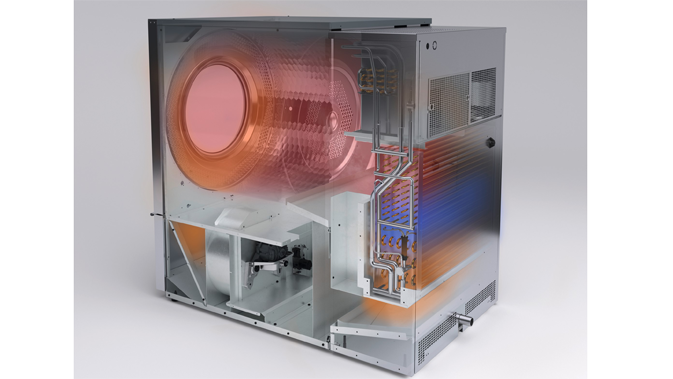 Abluftleitung überflüssig: In Trocknern mit Wärmepumpenmodul steht die erwärmte Luft für den nächsten Trockenprozess zur Verfügung. Dadurch lässt sich der Stromverbrauch deutlich reduzieren – gegenüber Geräten in konventioneller Bauweise um mehr als die Hälfte. (Foto: Miele)
