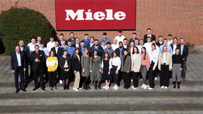 Junge Fachkräfte feiern erfolgreiche Abschlussprüfung bei Miele