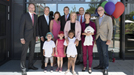 Freuen sich gemeinsam über die neue Miele-Betriebskita „IdeenReich“ (von links): Geschäftsführender Gesellschafter Dr. Markus Miele; Bürgermeister Henning Schulz; Andrea Körber, Abteilungsleiterin Tagespflege Stadt Gütersloh; Geschäftsführender Gesellschafter Dr. Reinhard Zinkann; Kita-Leiterin Sabine Peters; Geschäftsführer Finanzen/Hauptverwaltung Olaf Bartsch; Britta Hüfing, Filialleiterin pme Familienservice, mit Handpuppe Forschergeist; Joachim Martensmeier, Dezernent für Bildung, Jugend, Familie und Soziales, und Kinder der Kita „IdeenReich“.