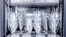 Kern der neuen Serie mit 60 und 90 Zentimeter breiten Geräten ist ein innovatives Spülsystem, das mehr Kapazität und bessere Aufbereitungsergebnisse bei gleichzeitig reduziertem Ressourceneinsatz bietet. Im Vergleich zur Vorgängergeneration können zum Beispiel jetzt fast 400 Prozent mehr Rundkolben und Flaschen (50 bis 100 Milliliter Inhalt) pro Charge gespült und desinfiziert werden.