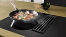 Nichts verstellt den Blick auf das Ganze: Das TwoInOne – hier die flächenbündig eingebaute Variante – integriert Induktionskochfeld und Dunstabzug in einem Gerät.
