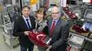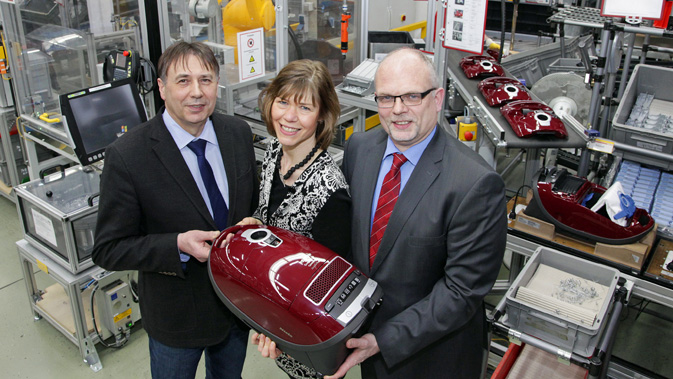 Miele hat seinen 50-millionsten Staubsauger den von Bodelschwinghschen Stiftungen für eine Wohngruppe von Bethel proWerk gespendet. (V.l.n.r: proWerk-Geschäftsführer Erhard Kunert, Sabine Bivolarevic und Andreas Schmedt, beide Segmentleitung Bodenpflege Werk Bielefeld.)