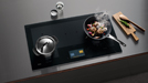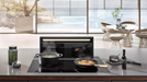Einen roten Punkt erhält auch die Downdraft-Haube Black Levantar, die im Miele-Kompetenzwerk Arnsberg für Lüftungs- und Filtertechnik entwickelt und gebaut wird. Dezent bleibt die Haube im Unterschrank verborgen und fährt erst dann aus der Arbeitsplatte heraus, wenn gekocht wird. Dank der 17 Zentimeter tiefen Gebläse-Einheit bleibt im Schrank mehr Platz für Auszüge. Mit der Funktion Con@ctivity passt sich die Saugleistung automatisch über drei Gebläse- und zwei Boosterstufen dem Kochgeschehen an. Ein manuelles Bedienen per Griff über das Kochfeld ist daher nicht mehr nötig. Ebenfalls neu ist die komfortable Steuerung über WLAN in der Miele App. Für die stets passende Ausleuchtung des angrenzenden Kochfeldes sorgt eine in drei Stufen dimmbare LED-Beleuchtung. (weitere Informationen siehe Pressemitteilung)