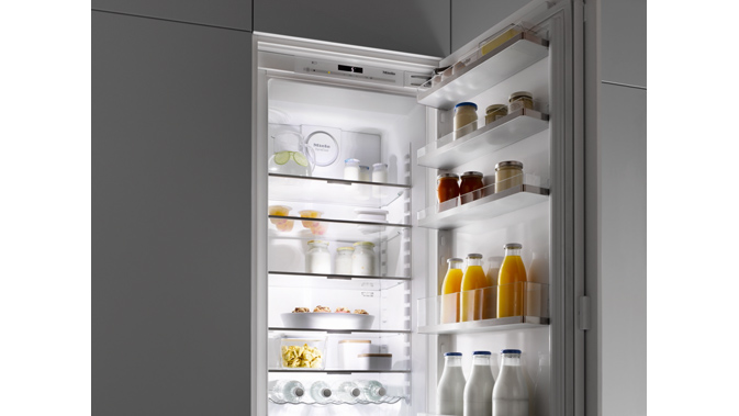Das innovative Lichtkonzept FlexiLight, das eine blendfreie Ausleuchtung sicherstellt, konnte die internationale Expertenjury von den Kühl- und Gefriergeräten der Einbaugeräte-Generation K 30.000 überzeugen. Die Lichtquelle ist in die Glasböden integriert und wird in jeder Einschubebene über entsprechende Kontakte aktiviert. Somit wird der Kühlschrank individuell ausgeleuchtet. Zudem bietet die Geräteserie eine Touch-Bedienung, die eine komfortable Steuerung der Temperatur ermöglicht. Eine weitere Besonderheit: Die verwendeten Materialien und klaren Linien des puristischen Designs sind auf die anderen Miele-Einbauküchengeräte abgestimmt.