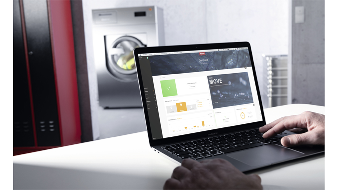 Eine digitale Lösung, die viele Arbeitsprozesse vereinfacht: das Portal „Miele MOVE connect“. Auf Wunsch schickt es relevante Nachrichten an mobile Endgeräte oder den PC – etwa, wenn eine Waschmaschine entladen werden kann. (Foto: Miele)