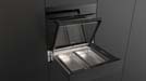 Mit der neuen Dampfgarschublade lassen sich erstmals drei typische Zubereitungsmethoden – Backen, Aufwärmen und Dampfgaren – in einer klassischen 60 cm hohen Küchennische kombinieren. In Verbindung mit einem 45 cm hohen Backofen mit Mikrowelle können gleich mehrere Speisen parallel zubereitet werden, etwa ein Auflauf im Backofen und Gemüse in der Dampfgarschublade. Die geringe Bauhöhe schafft zusätzliche Planungsoptionen, besonders für kompakte Küchen. Aber auch in Kochlandschaften mit einem minimalistischen Design fügt sich das Gerät nahtlos und unauffällig in das Einrichtungskonzept ein.