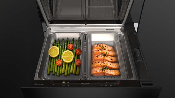 „Unsere neue Dampfgarschublade ist besonders für kompakte Küchen ein Gewinn – sie benötigt wenig Platz, bietet aber ein großes Garvolumen und einen 800-Milliliter-Wassertank, mit dem sich sogar komplette Menüs garen lassen. Mit Programmen wie Automatisches Menügaren oder Sous-Vide zeigen wir unsere Technologiekompetenz und ermöglichen punktgenaue Ergebnisse für alltägliche Anwendungen und anspruchsvolle Genießer,“ sagt Dr. Uwe Brunkhorst, Senior Vice President Business Unit Cooking bei Miele.
