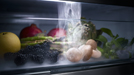 Obst und Gemüse brauchen bekanntlich Feuchtigkeit, um frisch und knackig zu bleiben. Bei Temperaturen zwischen 0 und 3 Grad Celsius hält schon das bewährte Frischesystem PerfectFresh Pro von Miele Lebensmittel bis zu fünfmal länger frisch als dies im klassischen Gemüsefach möglich ist. Dabei wird die natürliche Feuchtigkeit der Lebensmittel im geschlossenen Fach gehalten. Bei der neuen Generation K 7000 kommt nun PerfectFresh Active ins Spiel: Ein feiner Sprühnebel legt sich auf den Inhalt der Frischeschublade und sorgt damit für zusätzliche Feuchtigkeit – für den besonderen Frischekick. Dies gibt es sonst nur in professionellen Anwendungen, etwa in Feinkostgeschäften.