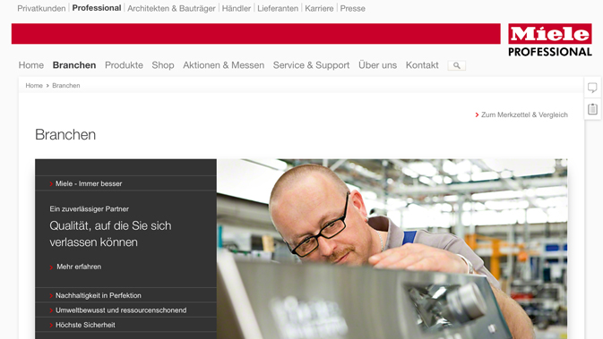 Neuer Internetauftritt: Miele Professional bietet Kunden noch mehr Service