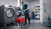 Kaufen, bequem finanzieren oder mieten? Miele bietet Gebäudereinigern in Deutschland, die sich für neue und damit modernste Wäschereitechnik entscheiden, viele Optionen: Vom Leasing- bis zum Mietvertrag, der sämtliche Wartungs- oder eventuelle Reparaturarbeiten abdeckt. Außerdem ermöglicht ein Umzugsservice während der Laufzeit eines Vertrags eine vorübergehende Einlagerung von Wäschereimaschinen und Zubehör.