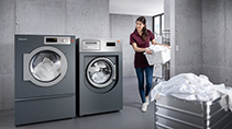 Wo täglich große Mengen Mopps und Wischtücher sauber werden müssen und dafür wenig Raum zur Verfügung steht, bewähren sich Kleinen Riesen von Miele: Kompakte Waschmaschinen und Trockner mit Beladekapazitäten von sechs bis acht Kilogramm. Mit diesen Geräten, die nur einen halben Quadratmeter Platz benötigen, bietet Miele maximale Flexibilität – etwa durch Zubehör wie verschiedene Sockel für die Aufstellung. Alle Maschinen können gekauft, gemietet oder geleast werden.