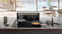 In der hochwertigen offenen Küche sind Einbaugeräte gefragt, die sich durch dezente Eleganz harmonisch in ihr Umfeld einfügen. Deshalb stehen zum Beispiel Induktionskochfelder mit integriertem Dunstabzug hoch im Kurs – je nach individueller Vorliebe aber auch eine sogenannte Downdraft-Haube wie die neue „Black Levantar“ von Miele. Verborgen im Unterschrank, fährt sie erst dann aus der Arbeitsplatte heraus, wenn gekocht wird. Für mehr Flexibilität und Bedienkomfort hat Miele diese gleichermaßen elegante wie leistungsstarke Baureihe jetzt weiter ausgebaut und perfektioniert.