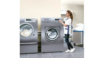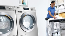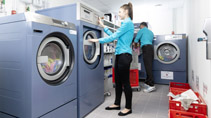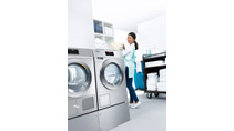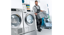 Wo täglich große Mengen Wäsche auf kleinem Raum sauber werden müssen, bewähren sich seit mehr als 40 Jahren die Kleinen Riesen von Miele. Jetzt werden die Waschmaschinen und Trockner durch zwei grundlegend neue Baureihen abgelöst: Wie bisher kommen die Geräte mit einem halben Quadratmeter Platz aus, können aber mit mehr Textilien beladen werden. Dabei sinkt der Verbrauch von Strom und Wasser. Mit einem neuen Touch-Display wird die Bedienung wesentlich einfacher und damit sicherer – auch von Hygieneprogrammen, die Bewohner und Mitarbeiter vor Keimübertragung durch Wäsche schützen können.