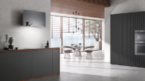 Mit ihrer vertikalen Glasfront erinnert die Wandhaube DA 9090 W Screen an einen Flachbildschirm – entsprechend gering ist auch ihr Platzbedarf. Damit passt das neue Haubenkonzept von Miele besonders gut in Küchen, die durch gerade Linien und reduzierte Formen geprägt sind. Zugleich gewinnen groß gewachsene Menschen beim Kochen mehr Bewegungsfreiheit. Und da in dem kompakten Korpus die exzellente Lüftungstechnik aus dem Miele-Werk Arnsberg steckt, bleiben auch bei der Leistung keine Wünsche offen.
