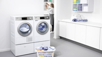 Wo täglich große Mengen Wäsche auf kleinem Raum sauber werden müssen, bewähren sich seit mehr als 40 Jahren die Kleinen Riesen von Miele. Im April werden die Waschmaschinen und Trockner durch zwei grundlegend neue Baureihen abgelöst: Wie bisher kommen die Geräte mit einem halben Quadratmeter Platz aus, können aber mit mehr Textilien beladen werden. Dabei sinkt der Verbrauch von Strom und Wasser, und mit einem neuen Touch-Display wird die Bedienung wesentlich einfacher.