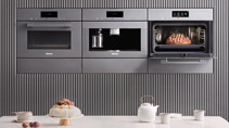 Mit seiner Einbaugeräte-Generation 7000 macht Miele das Kochen leicht und intuitiv wie nie: So liefert das Unternehmen die erste Kamera im Backofen, die extremer Hitze standhält. Zusätzlich passt ein cleverer Assistent auf, dass der Kuchen im Ofen nicht zu trocken gerät. Auf den neuen Induktionskochfeldern können bis zu sechs Töpfe und Pfannen beliebig auf der Glaskeramik platziert und verschoben werden, das Anwählen oder Zusammenschalten einzelner Kochzonen entfällt damit. Fast autonom arbeiten die neuen G 7000- Geschirrspüler, denn sie dosieren und starten selbstständig, wenn der Kunde es wünscht.
