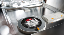 Miele verspricht bislang ungekannte Freiheit beim Geschirrspülen – dank AutoDos mit integrierter PowerDisk. Die im Markt einzigartige Systemlösung dosiert den Reiniger automatisch und verwendet ein eigens hierfür entwickeltes Pulvergranulat. Zudem lassen sich die neuen Geschirrspüler per App auf vielfältige Weise mobil steuern und programmieren. Nur die Be- und Entladung und das gelegentliche Wechseln der PowerDisk muss der Nutzer noch selbst übernehmen, alles Weitere erledigt das Gerät.