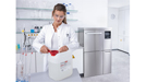 Mit einer Beladehöhe von 80 Zentimetern lässt sich der Laborspüler bequem be- und entladen. Das Zubehörsystem EasyLoad sorgt dafür, dass Laborglas automatisch korrekt positioniert wird. Dadurch wird das Beladen einfacher und Fehler werden vermieden. Eine separate Schublade bietet Platz für Reinigungsmittel – etwa aus der Serie ProCare Lab, die speziell für den Einsatz in Miele-Laborspülern entwickelt wurde.