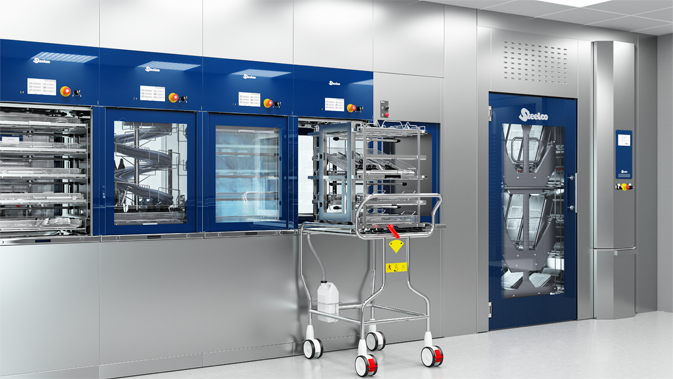 Reinigungs- und Desinfektionsautomaten des Systemanbieters Steelco: Mehrere Werke der Miele-Gruppe kooperieren bei der Herstellung von Geräten, Transportbändern und Beladungsträgern. (Foto: Steelco)