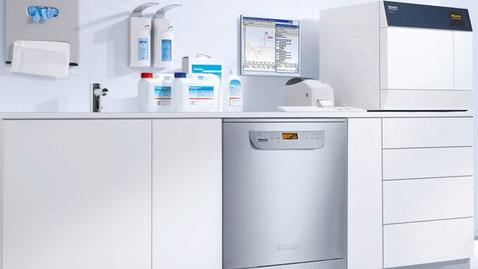 Mit passenden Prozesschemikalien, die unter dem Namen „ProCare Dent“ auf dem Markt sind, und einem schnellen Werkkundendienst bietet Miele Professional für Zahnarztpraxen ein umfangreiches und individuelles Produkt- und Servicepaket. Der mit mehr als 180 eigenen Medizinprodukte-Technikern größte Werkkundendienst in Deutschland führt auch die Prüfung der maschinellen Aufbereitungsverfahren durch.