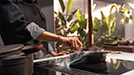 Ein gutes Zeitmanagement ist beim Kochen unerlässlich, denn das Arrangement verschiedener Zutaten zu einem perfekten Menü hat es in sich, da schließlich alles auf den Punkt gegart und wohl temperiert aufgetischt werden soll. Hier kommt MealSync* ins Spiel. Ein Beispiel: Zum Gericht aus dem Backofen sollen Beilagen aus dem Dampfbackofen serviert werden. Nach Anwahl der entsprechenden Programme – auf Wunsch mit festgelegtem Garzeitende – bestätigt der User in der Miele App die Funktion Synchronisieren. In diesem Fall startet der Backofen zeitversetzt nach dem Dampfbackofen, mit dem Ergebnis, dass alle Speisen zur festgelegten Zeit fertig sind. MealSync ist so nicht nur für Unerfahrene eine große Hilfe, sondern erleichtert auch geübten Köchinnen und Köchen den Ablauf und schafft mehr Zeit, sich beispielsweise seinen Gästen zu widmen.