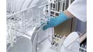 Prüfkörper aus Edelstahl, die zuvor mit Bakterien „angeschmutzt“ wurden, befestigt Diana Klapper mit speziellen Haltern an Tellern. Bei fünf unabhängigen Spülversuchen wird das mikrobiologische Ergebnis ermittelt und im Anschluss ein Mittelwert bestimmt. (Foto: Miele) |