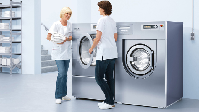 Sparsam in der hauseigenen Wäscherei: Eine Waschmaschine von Miele Professional, die Platz für zehn Kilogramm Wäsche bietet und 46 Prozent weniger Wasser verbraucht als das Vorgängermodell.