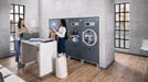 Little Giants are designed for load capacities of 6, 7 and 8 kg: Washing machines and dryers requiring only half a square metre of floor space with the size and appearance of domestic appliances – at least at first glance. With a programme running time of only 49 minutes in the shortest wash programme and 42 minutes for the fastest programme on the vented dryer, these models are, however, much faster than their domestic counterparts. These models can be integrated into an existing network, allowing reminders to be sent to a smartphone or tablet that laundry programmes have finished.