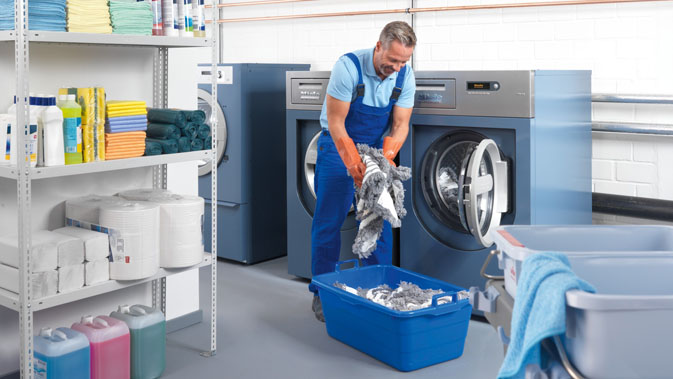 Up to the rough and tumble of everyday life: The new Mopstar washing machines from Miele Professional ensure perfectly laundered cleaning textiles – fast, thorough and gentle. |
