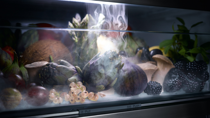 PerfectFresh Active from Miele for extra freshness: A fine, cool mist is distributed evenly within the crisper drawer. This keeps fruit and vegetables fresh for up to five times longer. |