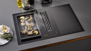 If you want to grill in your kitchen, unfazed by the vagaries of the weather outside, the Gourmet griddle from Miele is the perfect accessory, and also fits on all models with PowerFlex zones and full-surface induction. The undulating surface structure creates the typical char marks on food and contributes towards an incomparable grill aroma. Classic cuts of meat, vegetables or vegan ingredients cook uniformly and without the need for fat on the hand-cast aluminium griddle with its high-quality non-stick coating. A further benefit: After a barbecue, cleaning is fast and uncomplicated. As on the tepan yaki, four small silicone pads ensure a secure stand.