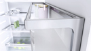 A thorough clean is performed by wiping the refrigerator interior with water and washing-up liquid. Practical: Many removable parts on Miele units are dishwasher-proof. To clean door gaskets, ideally use soft soap or a mild domestic detergent. Never use vinegar. Although it has disinfecting properties, this traditional household remedy can damage plastics and seals. Damaged and porous gaskets are no longer able to fulfil their purpose of preventing the passage of air. This results in higher power consumption to keep the temperature inside the unit low.