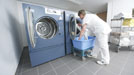 Laundry at the Cohaus-Vendt nursing home in Münster: The washer-extractors are connected to an automatic liquid dispensing system which precisely meters detergents and disinfectants, thereby reducing consumption.