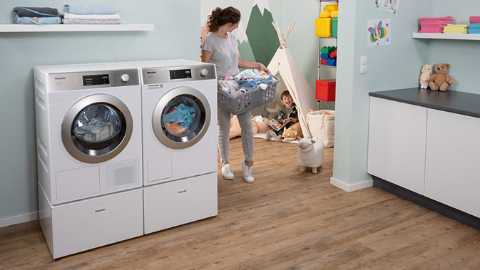 All models feature WiFi and can be connected to the Miele app. This allows notifications to be sent to mobile devices, reminding users for example when a washing machine or dryer has finished, and dispensing with unnecessary legwork. Wash programmes can be launched from the convenience of a smartphone or tablet and data is saved to the Miele cloud for 24 hours after a programme ends. This is a prerequisite for the Wash2Dry function which tells the dryer which wash programme was last used so that a matching drying programme can be automatically selected. In this case, only the laundry needs to be transferred from one machine to the other. Everything else is automatic.