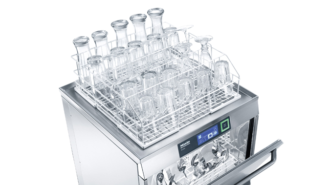 Customers with limited space but not wishing to do without sparkling glassware and not keen on polishing can expect a new solution from Miele Professional from January onwards. On new undercounter tank washers, reverse osmosis ensuring the requisite quality of water is now space-savingly and conveniently integrated.