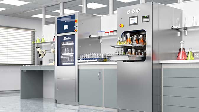 Reliable solution for the sterilization of heat- and moisture-proof materials: A steam sterilizer from Steelco (foreground), in big demand above all in research and science laboratories. (Photo: Steelco)