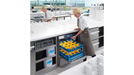 A wide range of baskets, available in different sizes to suit machine categories, offers ample space for all load types – from undercarriages for crates to cutlery holders. New to the range are baskets for wine glasses which are held in a sloping position to drain drain water out of pedestals. A spotless, sparkling finish without the need for polishing is afforded by water treatment cartridges providing a supply of fully or partially demineralised water and which can be replaced without fuss. Dispensing systems guarantee the sparing and automatic dosing of detergents, and matching plinths make for customised installation.