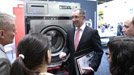 Presenting the new washing machines to journalists at the Internorga exhibition: Jürgen Schäfer, Head of Laundry Technology with Miele Professional. |