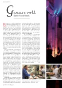Die insgesamt acht Veranstaltungen in der Gallery während der Food Week boten für jeden Geschmack etwas. Beson- ders beliebt waren auch die beiden Back- Workshops. Die Patissiers von Princess Cheesecake zauberten ein „Käsekuchen- wunder“, und die Feinkost-Konditorei Du Bonheur backte Pavlova mit den Teilneh- mern, eine Torte aus Baisermasse mit Sah- ne- und Fruchtfüllung. Zum Abschluss der Dinnerreihe kreierten die Spitzenköche Steffen Sinzinger und Benjamin Donath ein Menü, das mit allen Sinnen spielte. Zwischen den einzelnen Gängen erfuhren die Gäste Wissenswertes über die Verän- derungen des Geschmackssinns unter Ein- uss äußerer Sinnesreize, vorgetragen von den Autorinnen Melanie Mühl und Diana Kropp aus ihrem Buch „Die Kunst des klu- gen Essens“. Für die musikalische Unterma- lung sorgte eine auf das Menü abgestimmte Musikauswahl.